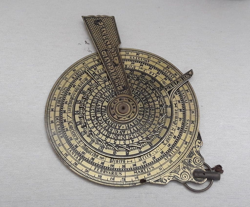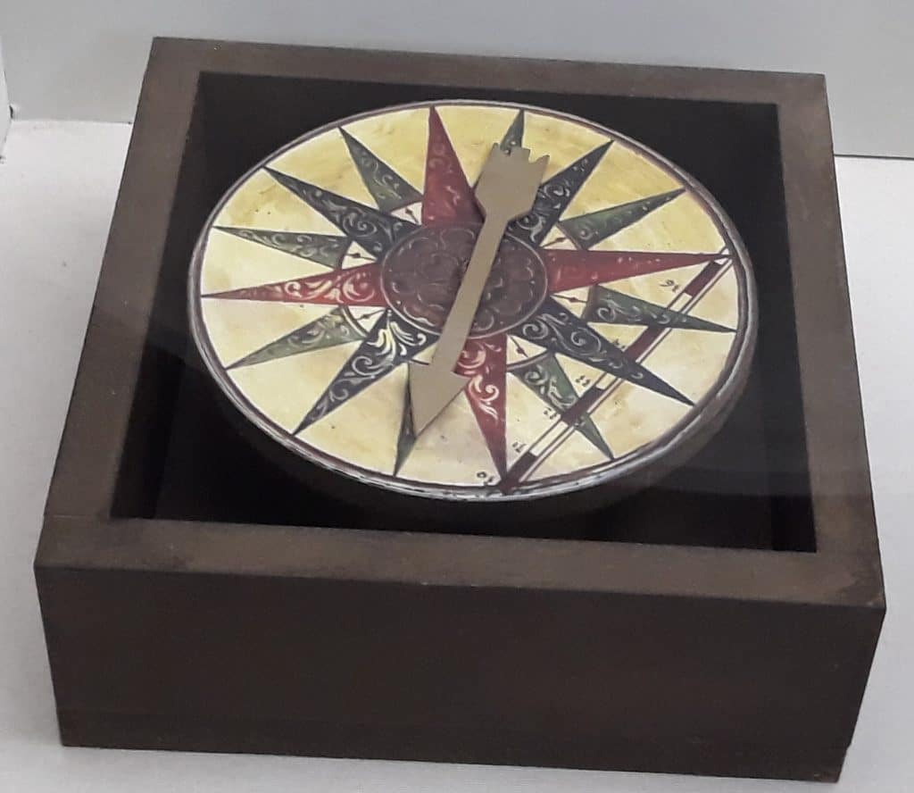La brújula es uno de los grandes inventos de la Historia y ha sido fundamental para la navegación prácticamente hasta la Edad Contemporánea. Se trata de una aguja imantada, suspendida sobre un círculo graduado que señala al polo magnético, que no coincide exactamente con el norte, como pudo comprobar el propio Colón. La brújula es un invento chino introducido en el siglo xi en el Mediterráneo por los islámicos, que pasó al Atlántico tres siglos después, aunque su uso en ese tiempo fue muy limitado, entre otras cosas porque la navegación que se solía hacer era de cabotaje. Todavía a finales del siglo xvi, el padre José de Acosta se sorprendía de que un pequeño imán «mande en la mar y obligue al abismo inmenso a obedecer y estar a suorden». Pero era esencial para emprender cualquier periplo ultramarino pues, como escribió López de Gómara, sin ella «las naos se perderían en el océano». Él la usaba con una rosa de los vientos sobrepuesta en la que se indicaban treinta y dos rumbos posibles, que eran puntos cardinales intermedios, y presuponemos que también lo hacían los capitanes de laPinta y de laNiña.
